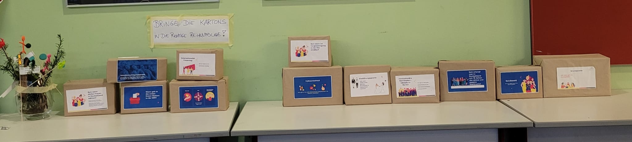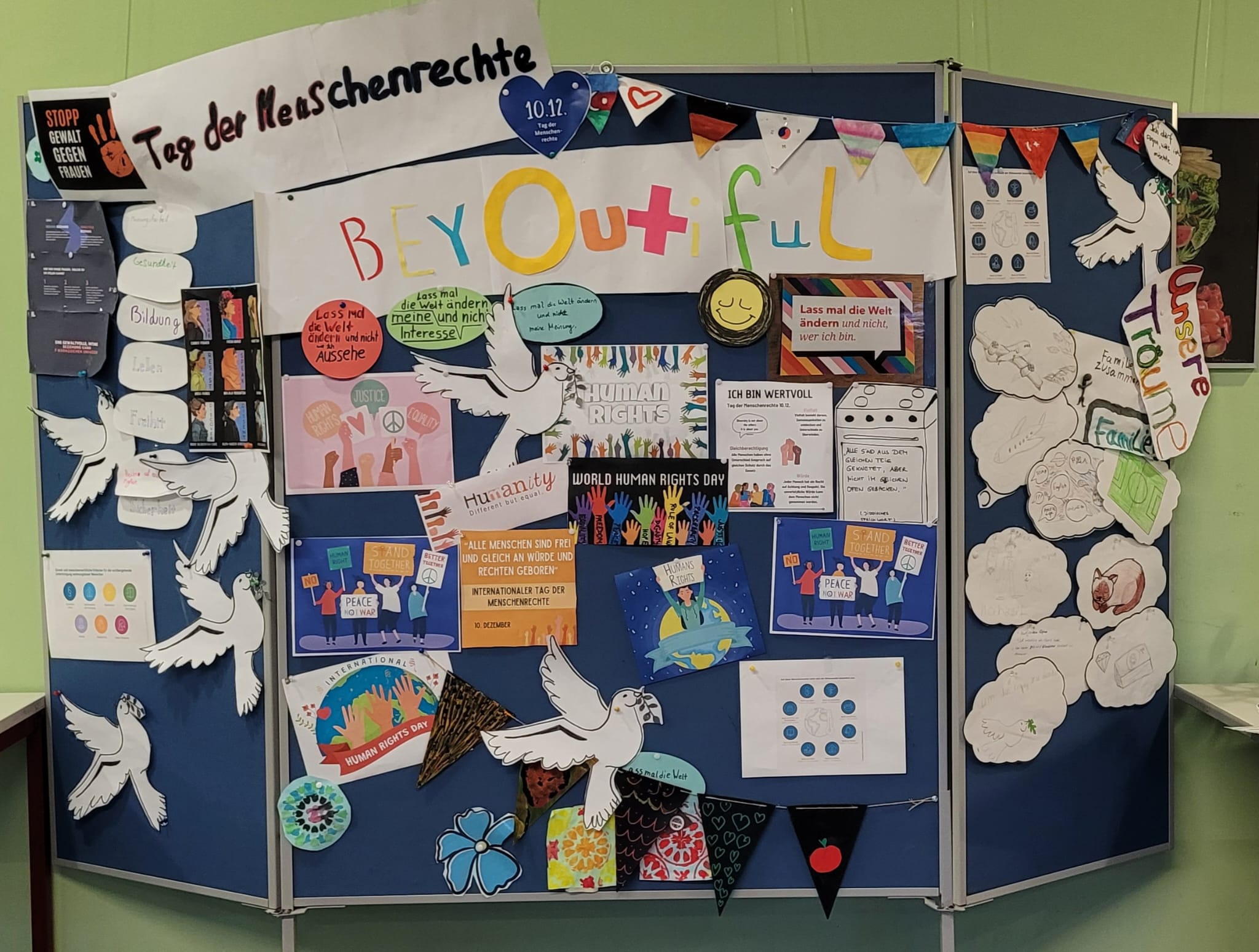 Bürgerliche, soziale Rechte und vor allem die Kinderrechte haben wir in einem bunten Blumenstrauß gestaltet. (siehe Foto)