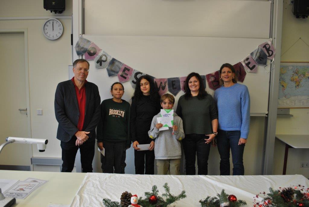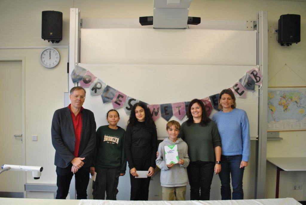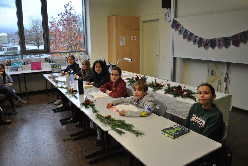In den letzten Wochen wurde ausgiebig gelesen und vor allem vorgelesen. Sechs Schülerinnen und Schüler traten nun als Klassensiegerinnen und Klassensieger beim Schulwettbewerb im liebevoll dekorierten Musiksaal der Realschule Neckargemünd an. Dort erwartete die Schülerinnen und Schüler der sechsten Klassen viele Lesekisten zum Bewundern, Zitate zum Lesen und viele weitere Bücher zum Durchstöbern. Voller Neugier und Aufregung starteten die sechs Vorleserinnen und Vorleser mit ganz unterschiedlichen Büchern* ins Rennen. Andre Geisler aus der Klasse 6a setzte sich mit seiner Textpassage aus Paluten Freedom: „Ein neuer Sheriff in Smodge City“ und einem spontan gelesenen Text haushoch gegen seine MitstreiterInnen durch und wird unsere Schule im Frühjahr 2026 beim Kreisentscheid vertreten. Wir danken der Jury mit der Vorjahressiegerin Jana Meyer, den Deutschlehrerinnen der 6. Klassen mit Frau Apfel, Frau Steininger- Kaltschmitt und Frau Frey sowie Frau Milte und Herrn Falter. Die Schulgemeinschaft gratuliert sehr herzlich und drückt Andre für die nächste Runde die Daumen!