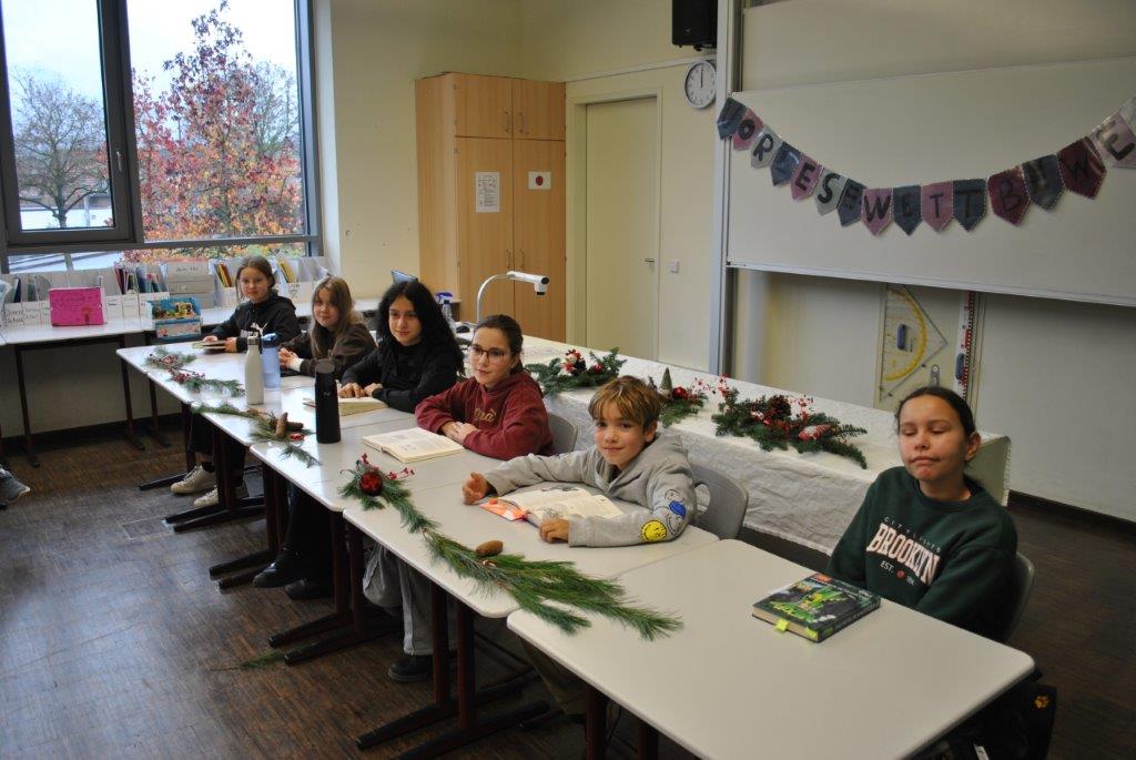 Das SMV-Nikolausteam hat am Nachmittag des Freitags, 05.12.2025, die Weihnachts-/Nikolausgrüße gebastelt und wurden dabei von drei fleißigen Waffelbäckerinnen verpflegt. Bei Waffeln, Tee und Weihnachtsliedern waren die 260 Nikolauskarten bald gefertigt und sortiert. Danke an alle fleißigen HelferInnen, Bäckerinnen und die SängerInnen! Am Montag, 08.12.2025, wurden die Nikolausgrüße dann traditionell von den SMV-10ern in Weihnachtsoutfit verteilt.