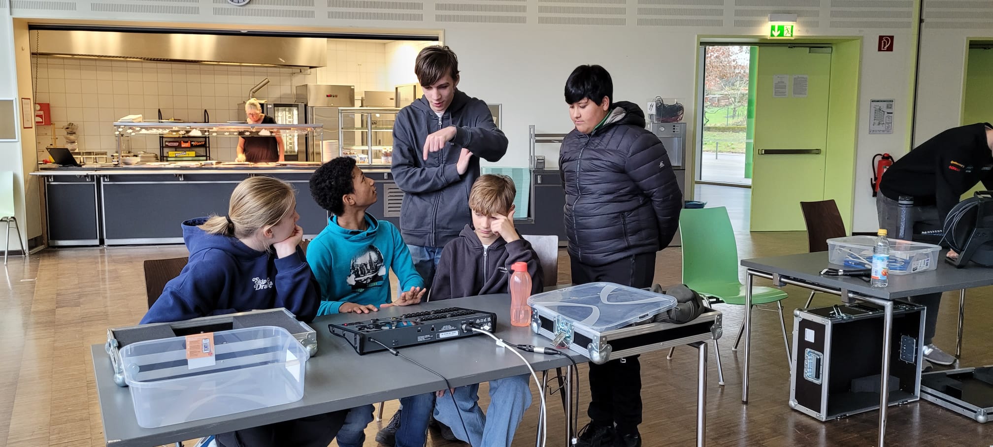 Alle Jahre wieder - und so wichtig: das Suchen und Finden neuer Mitglieder im Technik-Team. Unser aktuelles Technik-Team hatte eine Schulung an mehreren Stationen organisiert und durchgeführt. Ca. 12 interessierte Schüler(innen) wurden in die Stationen eingeführt und durften dann Schweinwerfer zum Erleuchten bringen, ein digitales Mischpult bedienen lernen, die Aula-Technik mit dem Pad bedienen und vieles mehr. DANKE an das aktuelle Technik-Team für euren großartigen Einsatz!